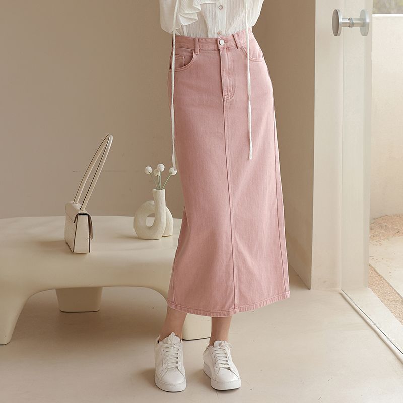 縦ラインを強調するストレートシルエットで、脚長・スタイルアップ効果