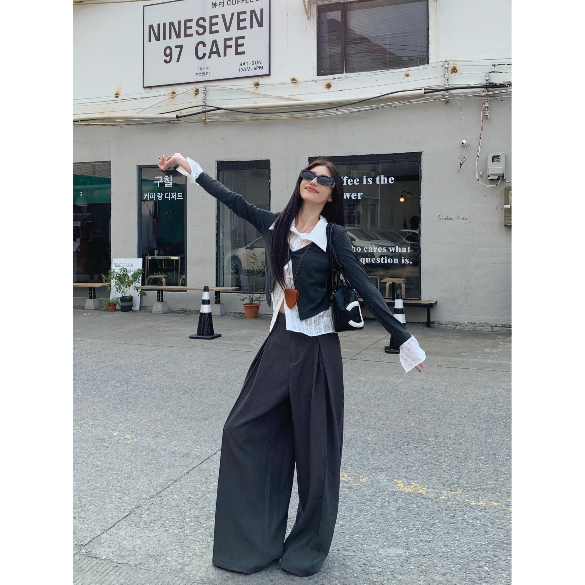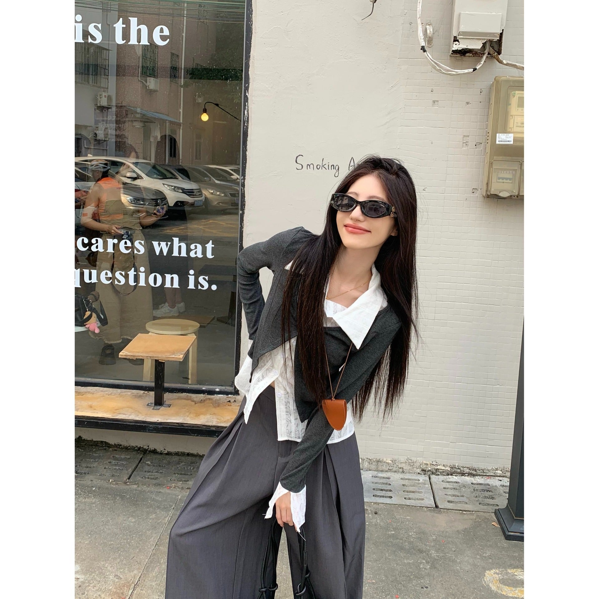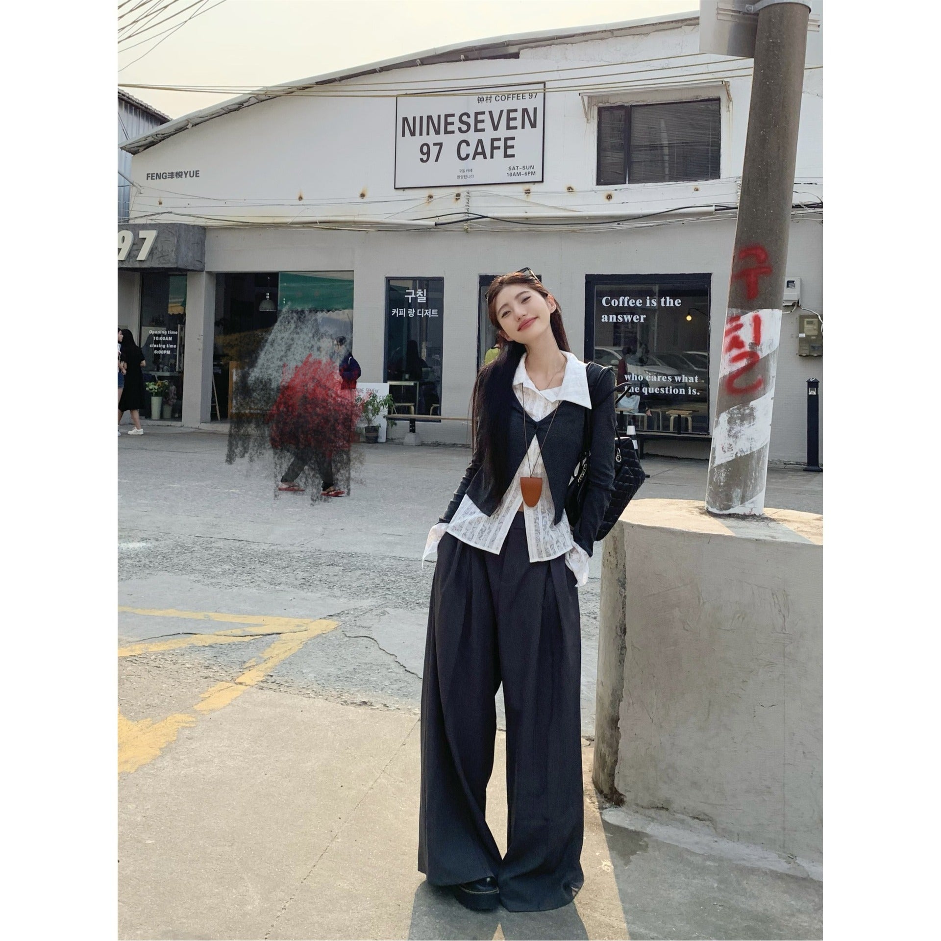 フロントVラインが縦のラインを強調し、上半身をすっきりと見せてくれるデザイン。レイヤードでも重たく見えず、バランスよく着用できる。