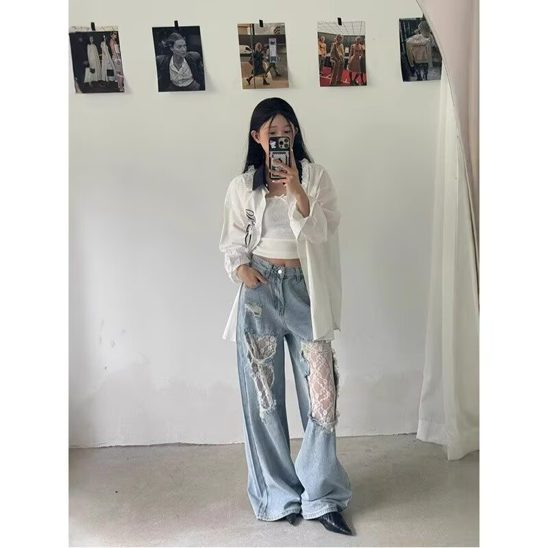 肌見せしすぎず、デニムのカジュアルさにフェミニンなニュアンスをプラス。デニム×レースのコントラストで、他にはない存在感を演出。