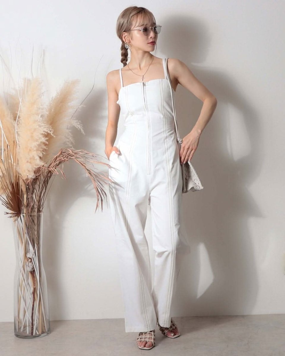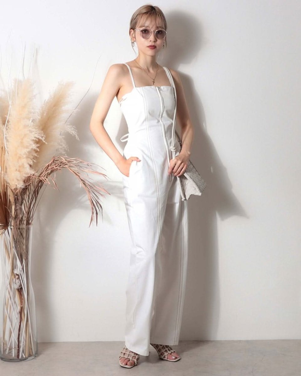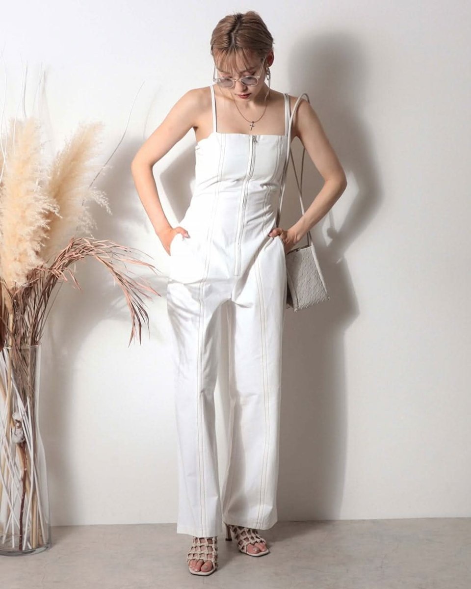 <新色展開>ステッチデザインキャミソールロンパース 3色展開