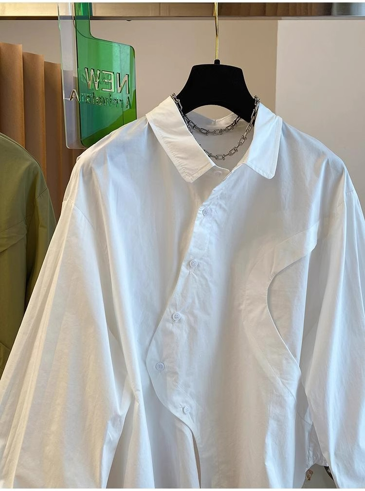 アシンメトリーな前立てデザインで曲線的な切り替えが視線を縦に流し、シンプルながら存在感のある一枚に。