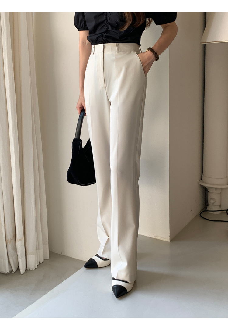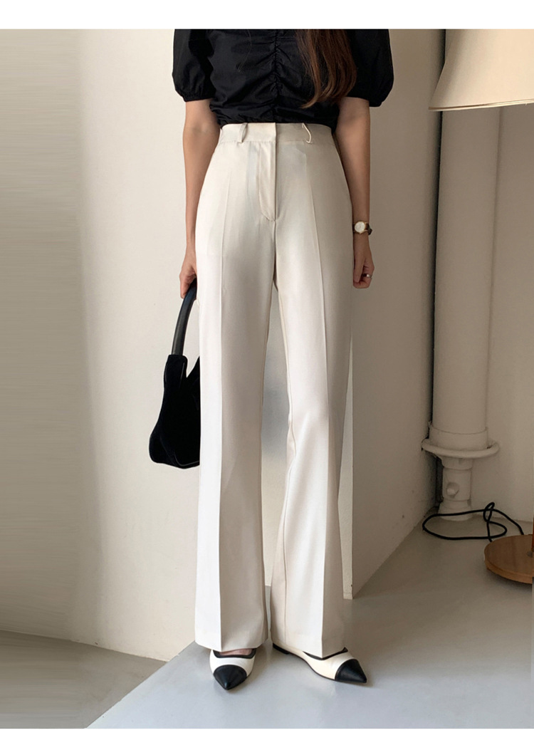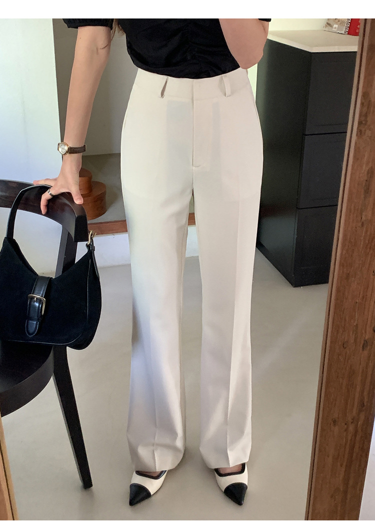 【ポイント】センタープレス入りで縦ラインを強調し、脚長効果〇脚下から自然に広がるフレアシルエットで美脚見え