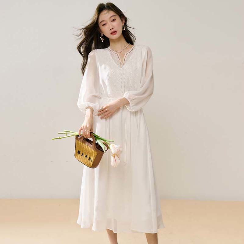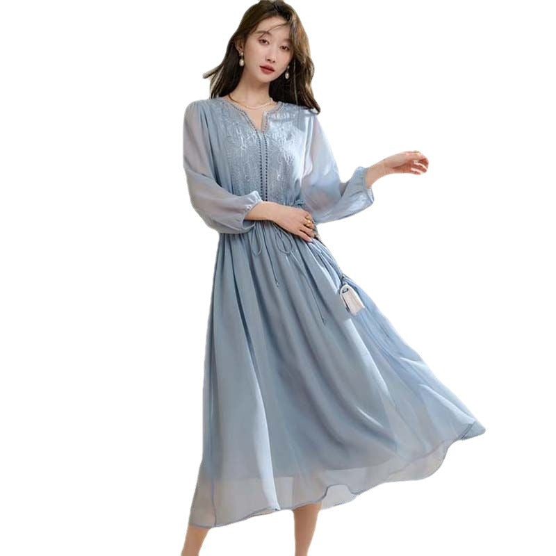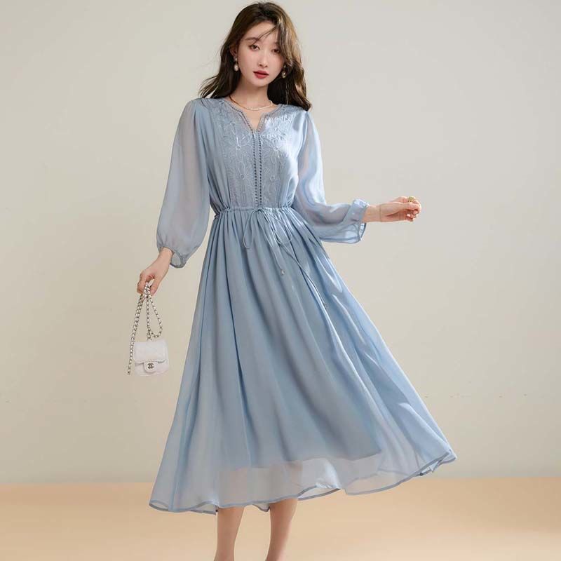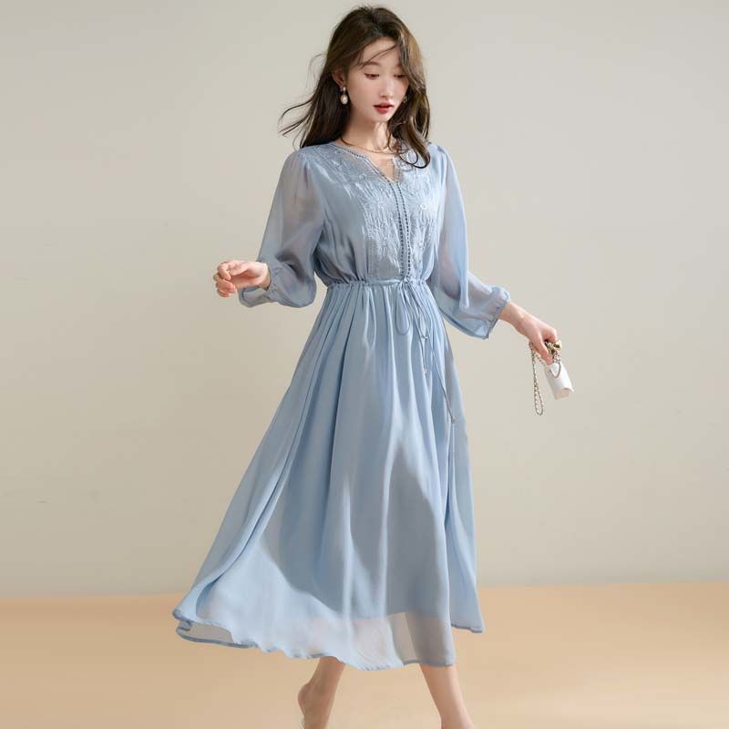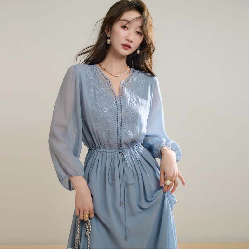 刺繍シフォンカジュアルワンピース